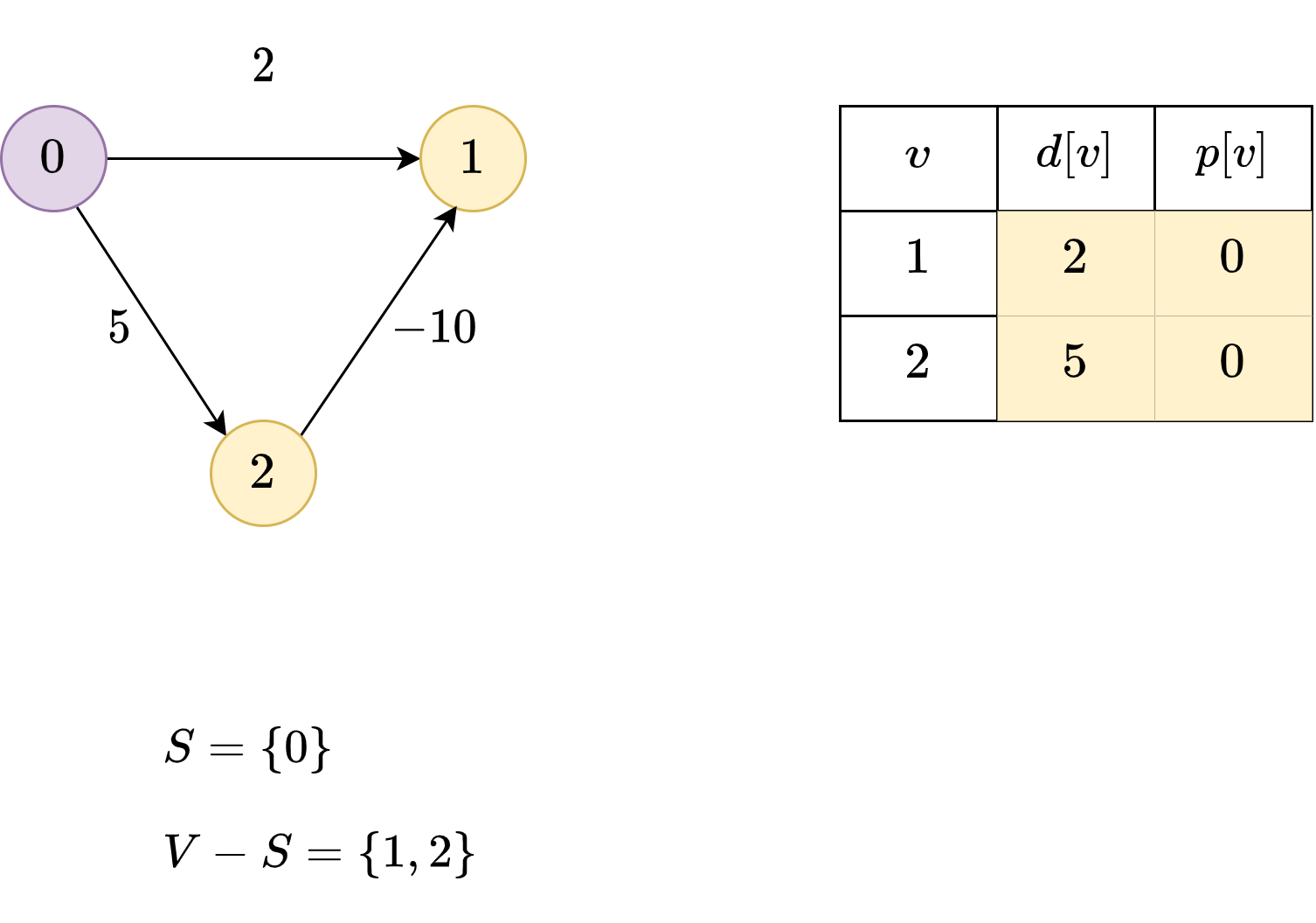\(d[v]\): the shortest distance from \(s\) to \(v\).