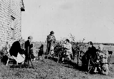 Some ladies of Antigonish enjoying Clara Cunningham Seaman's garden on Court Street. c. 1910