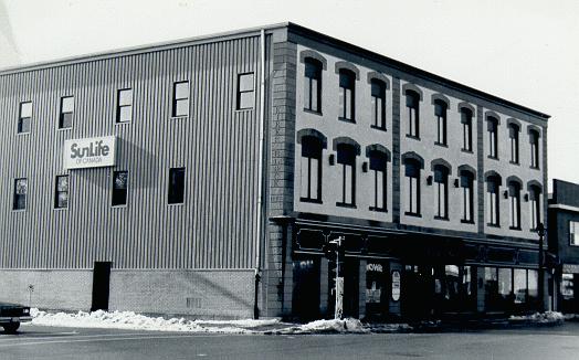 The 3-storey Kirk Block, with its symmetrical facade, flat roof and round-arched windows, was typical of late 19th-century Italianate commercial architecture which dotted the mainstreets of Canada; only the traditional ornate cornice is missing. Although the basement foundation is stone, the superstructure was fashioned from 300,000 bricks manufactured at Hulbert's Brickyard on James Street. In keeping with the Italianate taste for accentuating the interplay of light and shade, the stuccoed brick facade contrasts with the segmental brick arched windows. It is interesting to note that the contract for the Kirk Block originally called for a mansard metal roof. Projecting solidity without being overtly ostentatious, the Kirk Block must have been an imposing addition to Antigonish's Main Street in the 1880s. After all, it marked a real break from the other stores, with their rustic milled lumber facades, false fronts and gabled roofs, which were often more residential than commercial in appearance.