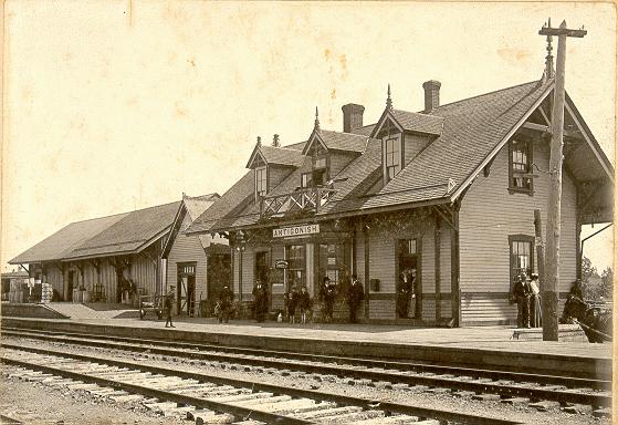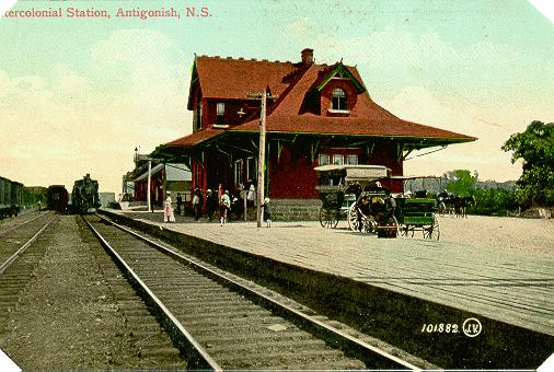 Throughout the late nineteenth century and most of the twentieth century, the railway station at the "East End" has been the focal point of many town activities. An evening promenade "to the station" was once part of the daily rhythm of town life. The arrival and unloading of the circus at the CN Station always drew a large crowd of spectators. So too did the departures and arrivals of soldiers during both World Wars. The present railway station replaced an original older wooden version. It was built during a "flurry" of station building triggered by the "architectural war" between the Intercolonial Railway and Canadian Pacific at the turn of the century. The construction contract was won by Rhodes, Curry & Co. of Amherst, one of the largest building contractors in the Maritimes between 1880 and 1920. The new brick station was finished in 1908 and boasted many new amenities, including a men's and ladies' waiting room. In "splendour" it was believed to be rivalled only by the town's cathedral and university buildings.