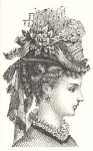 HAVING just received a large assortment of BONNETS AND BONNET MATERIALS requests the attention of the public, hoping she will be able to accommodate those coming from a distance as they can be suited at once to their taste... Silk SCARFS, Blue, Brown and Black VEILS, Dress Caps and Head Dresses, Bride's Wreaths, Artificial Flowers, Gloves, Ribbons, Ladies' Belts, Ladies' Black and Grey Cloth Mantles, Eugenie Collars, etc. Particular attention paid to Mourning Goods. Families supplied at short notice. As Miss B. intends to continue the business she will endeavor to merit the patronage of the public by attention and promptitude. Orders sent by mail will receive particular attention." [Casket , 11 February 1858]