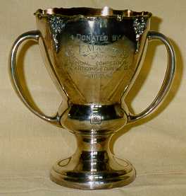 Comments: This trophy was donated for the annual curling competition in Antigonish in 1910 by E.F. MacNeill, manager of the local Bank of Nova Scotia. Curling, dubbed the "roarin game" by the Casket, was one of the more popular sports activities in Antigonish and by the 1880s, the Antigonish Curling Club was competing against the Bluenose Club of New Glasgow. Participants even travelled to Truro, Halifax and Sydney for matches. By 1883, the Club, which played on local ponds, also had a covered rink on Victoria Street, just off St. Mary's Street. By 1900, there were many devotees of the game, including James McCarrol, J.C. McDonald, Ernest Gregory, D. Chisholm, S. Copeland, W.E. Cunningham, L.C. Archibald, A.D. Wilkie, C.N. Wilkie, A.B. Copeland, L. Cunningham, and W.P. Cunningham. The Antigonish players were passionate about the game and eagerly scored a coup over the Sydney team in 1892 when the latter's stones were ill-suited to the soft ice. The MacNeill trophy was a much sought-after prize at the Antigonish Bonspiel as indicated in this photograph of the winners in 1927.