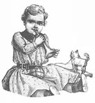 Comments: This picture story-book is filled with beautiful illustrations and stories promoting love, religion and morality. The print is large for easy reading and the paper thick and of high quality. It has all the signs of wear and tear that come with both age and regular use. The stories, poems and prayers in The Children's Wreath all convey the same sugar-coated messages: be kind to people and animals, respect your elders and love God. The illustrations also reinforce these themes as exemplified by one picture of a pretty girl gracefully feeding a baby deer from her own hand.