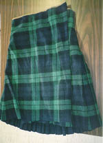 Item: SOLDIER'S HIGHLAND KILTComments: This loom-woven kilt with its 23 pleats is made of heavy wool. The tartan is Argyll and Sutherland. Although the kilt lacks any identifying marks about the manufacturer or place of origin, the single webbing fastener on the right hand side is a good indicator of its age, for modern military kilts have buckles with leather on either side. The kilt was originally part of the Highland kit worn by Angus Steven (Dux) MacKenzie who served with the 85th Battalion of Nova Scotia Highlanders. He was later a coal miner in Dominion, Cape Breton, and owned a small grocery store on the Merigomish road during the Depression. This kilt was actually the second issued to MacKenzie. His previous kilt was so infested with vermin that it was burned during a hospital stay in Great Britain. The kilt was fitted to be worn high around the midriff; the more modern versions are worn just above the hips. It was reputed to be murderously hot in summer and drafty in winter. Furthermore, even after the addition of a leather apron, the open-legged kilt was ill-suited to trench warfare.