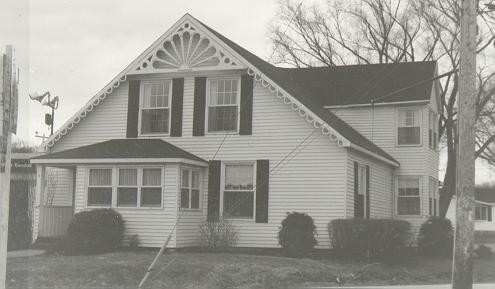 1 Hawthorne is allegedly one of the oldest surviving houses in Antigonish. This 1 1/2 frame building with its projecting frontispiece reflects the sturdy simplicity of its New England antecedents, particularly the shared traditions of the Atlantic seaboard of wood construction and house design. It has the classic steep pitched roof with minimal overhanging eaves. The house has been extensively altered over the years. Gone are the shingle roof and clapboard siding. The lacy "gingerbread trim" and the gable ornamentation are clearly late 19th-century embellishments--the creations of the scroll saw.