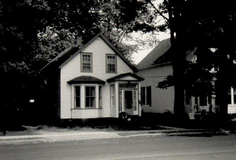 Built around 1875, 25 Church Street is a good example of vernacular Greek Revival architecture, a style which stresses symmetry, straight lines, and order. This modest one-and-a-half storey house features the popular front gable design with an off-centre doorway, a steep roof, and an enclosed portico with a pediment, a rectangular transom, and sidelights. There are no dormers, but there are two symmetrically placed second-storey windows. The facade has a bay window, though this is probably a later addition, as is the brick foundation. The main entrance, however, is original; it was crafted from hemlock with wooden peg construction.