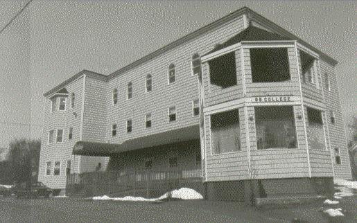 | Back |The Royal George has long been a popular Antigonish landmark. It was built in 1906 by C.E. Gregory, a local barrister and son of C.C. Gregory, a prominent engineer and barrister who lived at "Fernwood", now known as Mount Cameron. The building was designed by William Critchlow Harris, an Island architect with a flair for the fanciful. The 3-4 storey building with its flat roof, enclosed 2-storey verandah, hexagonal tower-shaped gazebo and crenellated parapet, a fashionable Tudor-Revival feature, had a castle-like appearance.