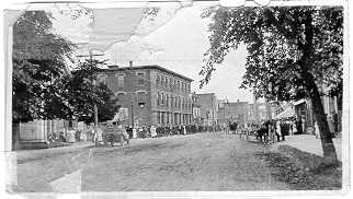 The Kirk Block, located on the southwest corner of Main and Church Streets, was purchased by Duncan Grant Kirk from William Thompson in 1881 for $2000. D.G. Kirk along with his father, Adam Kirk, erected the 81' by 90' brick building in 1883. The architect for the Kirk Block was J.W. Chisholm; Dewar Brothers of Barney's River did the framework. As a retail and wholesale business, A. Kirk & Co. sold dry goods, millinery, clothing, carpets, furniture, boots and shoes, flour, meal and groceries. Until 1906, the Merchant's Bank (predecessor of the Royal Bank of Canada) was housed in the Kirk Block; the bank manager lived in an apartment above the bank. In 1915, John Kennedy and Alexander K. MacDonald, both railroad contractors, purchased the Kirk Block for $15,000. They devoted their business to dry goods, millinery, ready-to-wear garments, furniture, carpets, and general household goods. They also operated a mail order business in Antigonish, Guysborough, Inverness and Richmond Counties.