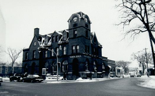 It is difficult to trace precisely the architectural pedigree of this structure. Since the construction of Post Offices fell under the jurisdiction of the Department of Public Works, designs for federal government buildings tended to be generic expressions of the "national image"; after all they emanated from the office of the Ottawa-based Chief Dominion architect. The square tower, a prominent visual landmark, is characteristic of the traditional pavillon of the Second Empire design. And yet the huge chimney, roof line parapet and the steeply pitched front facing gables are redolent of the Tudor Revival style popularized in the early 20th century. The multiple dormers and busy roof line give the Town Hall Chateau qualities, while the asymmetrical design, rough textured stone base and wide, arched windows are distinctly Romanesque Revival in inspiration. This blending of styles, however, was typical of many turn-of-the-century architectural designs. The prominently displayed clock (which started running in August 1907) was also a symbol of a maturing town and modernization. The rhythm of "Main Street" would now keep step with the hours and minutes of a time-defined world.