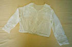 Item:SHIRTWAIST BLOUSEComments:This shirtwaist blouse came from the McPheehousehold in Lochaber. It is of washable cotton and was factory-made. There is decorative lace on the sleeves and in the buttoned front with its bib-like lace insert.