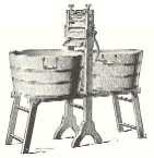 The earliest version of the wringer appeared in the mid-19th century. The "mangler", as it was called, was particularly popular for bed and table linens. The rollers on these small upright machines were made of wood, typically pine. By the 1900s smaller wringers made of rubber, which could be mounted on tables, were available. They had one distinct asset--they did less damage to buttons.
