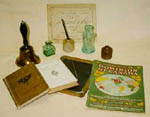 Comments: It is difficult to pinpoint the date or origin of this clay inkwell because there are no distinguishing marks. However, this style of inkwell was replaced in the late 19th century by the more common glass inkwell. It was plain and notoriously messy as many old desk tops attest. The ink in the inkwell was either a commercial preparation or a homemade mixture of maple bark, lamp black and iron sulphate. The goose quill was commonly used before the introduction of the steel pen, which would eventually give way to the ball-point pen. The "Master" (the traditional name for the school teacher) was usually adept at "transforming the quill into a pen" and handed this skill on to those pupils learning to write. As a result, the pen knife was an "essential part of the old 'school master's' equipment". Penmanship was also highly valued at this time and was regarded as one of the most important of the "3 R's".