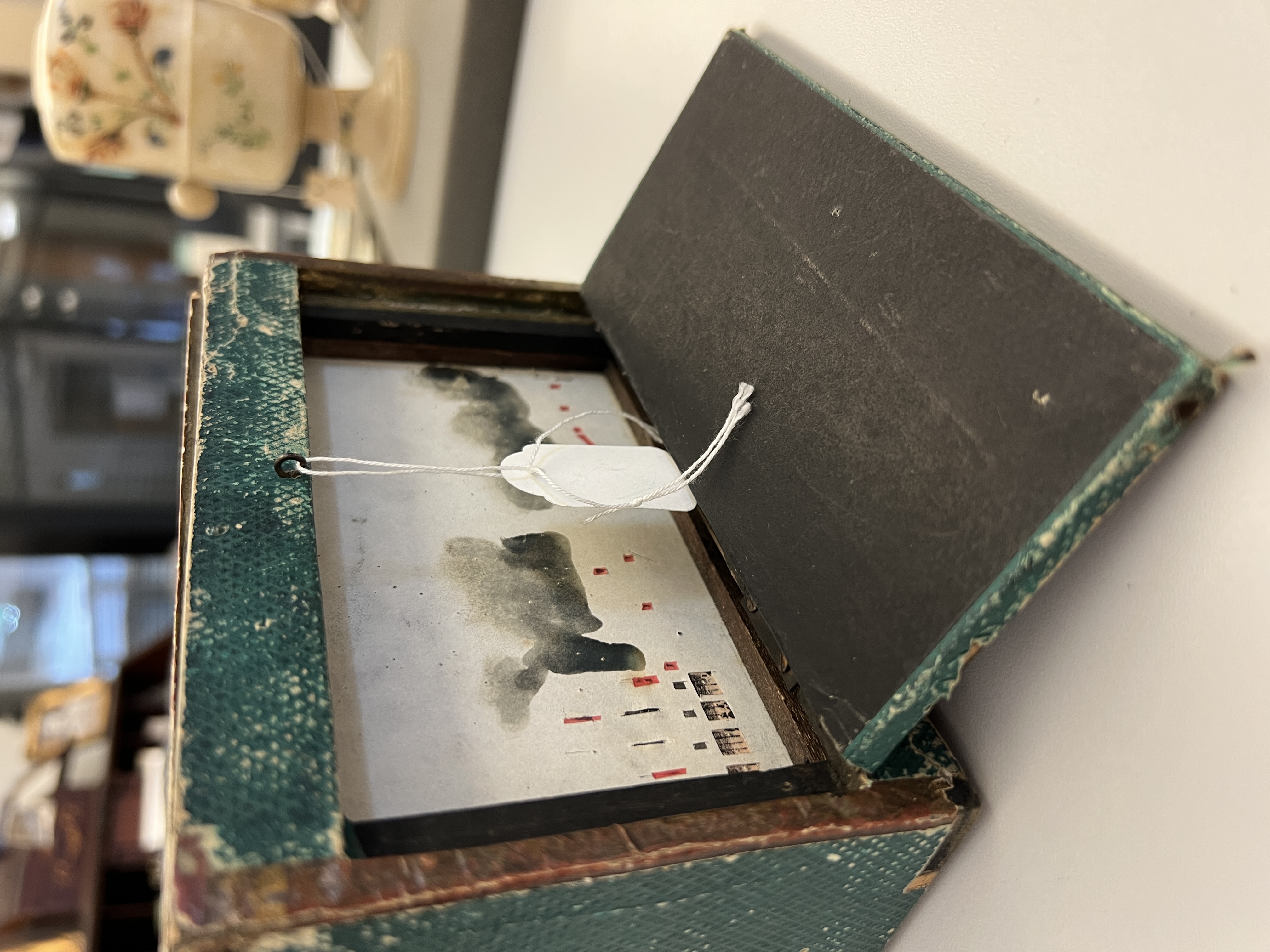 The Cinémathèque examples share the same patterned green paper as the polyorama panoptique – a diamond latticework printed in black over green. The Bill Douglas example has a diamond pattern uniquely embossed in the paper, not printed. Could the Bill Douglas example be the rarest, perhaps one of the first that Lefort built?