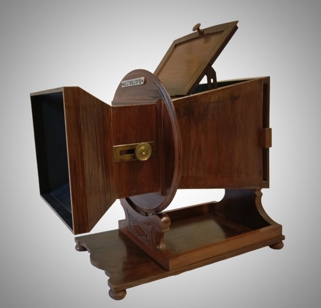 The Naya Alethoscope embodies most of the improvements of Ponti's Megalethoscope, but is unique in having a flat, rather than a curved image-plate.