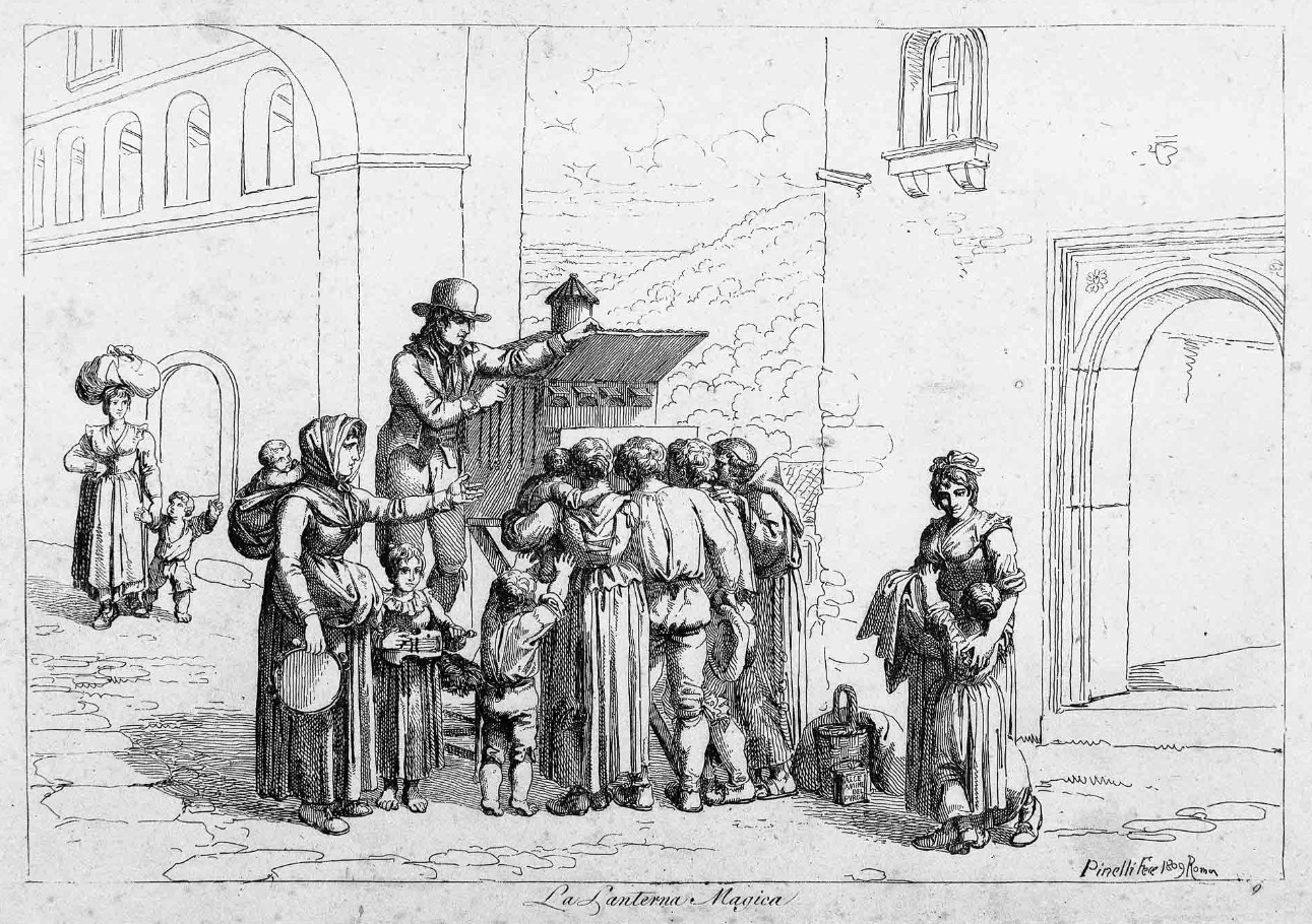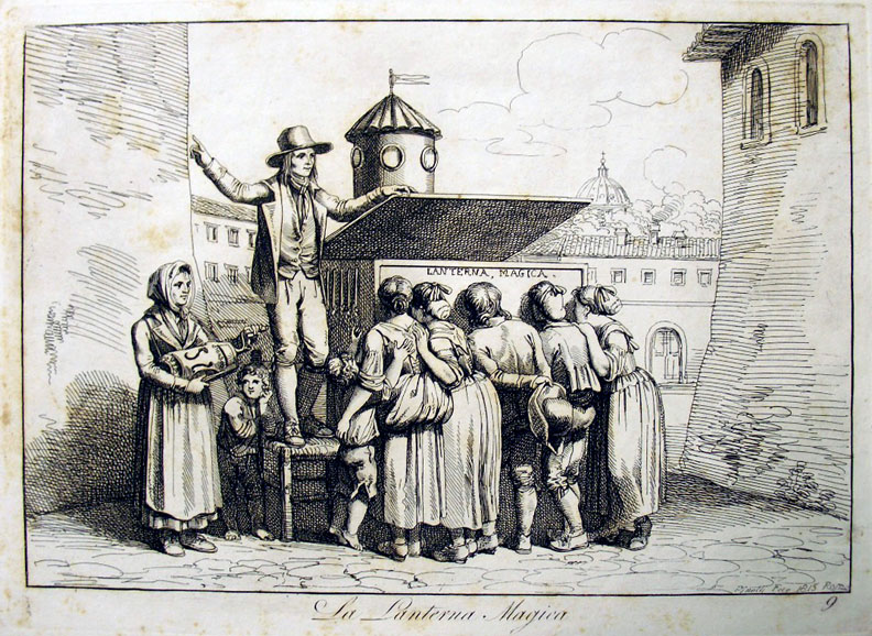 Barolomeo Pinelli (1781-1835), La Lanterna Magica (The Magic Lantern), 1809. Etching. Graphic Arts Theater Collection, Princeton University Library. |