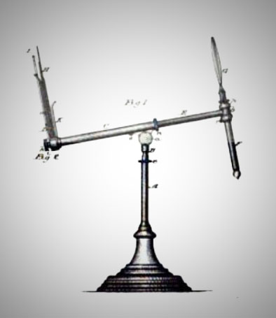 This is an illustration from a patent application made by H. Pattberg in 1879. It has a telescoping armature that tilts.