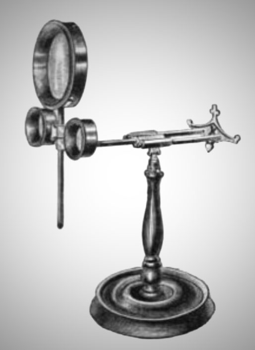 The two devices depicted here borrow instead from the Holmes stereoscope. Not only is the lens hood similar, but in the Lewis device (Figure PSG.2) the handle and the oddly-shaped connector that is enlarged in the diagram are identical to ones on Holmes devices.