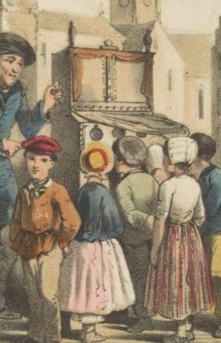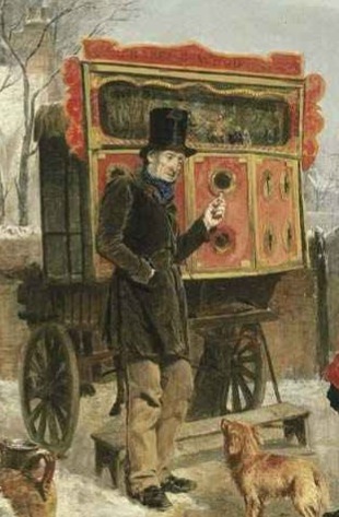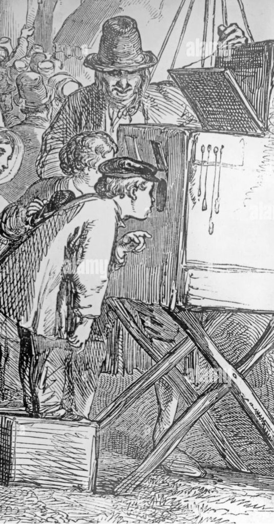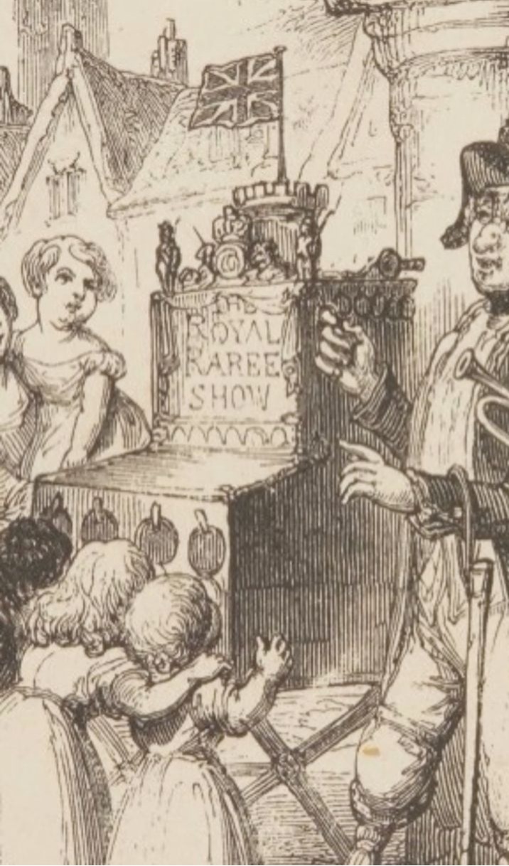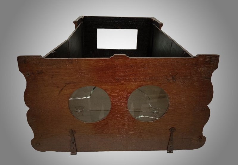 This box with two lenses rather than four and a glass window in place of a front-flap is a separate species, but nonetheless very similar to the Sergeant Bell. It is the only known example of a Raree Show to have survived.
