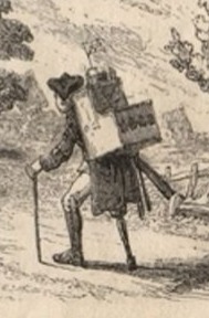 This is a small flytower box fitted with shoulder straps so it can be carried on the showman's back. I call it a "Sergeant Bell" because it is the one that Sergeant Bell is depicted carrying in the 1839 book Sergeant Bell and His Raree Show (Figure RR-SB-01).