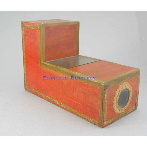 These are toy versions of show-boxes, or, more accurately of Raree Shows since they have flytowers with images that can be lowered into the viewing area by means of strings. They are a genus of "optical machines" and are included in the Optical Machine Taxonomy.