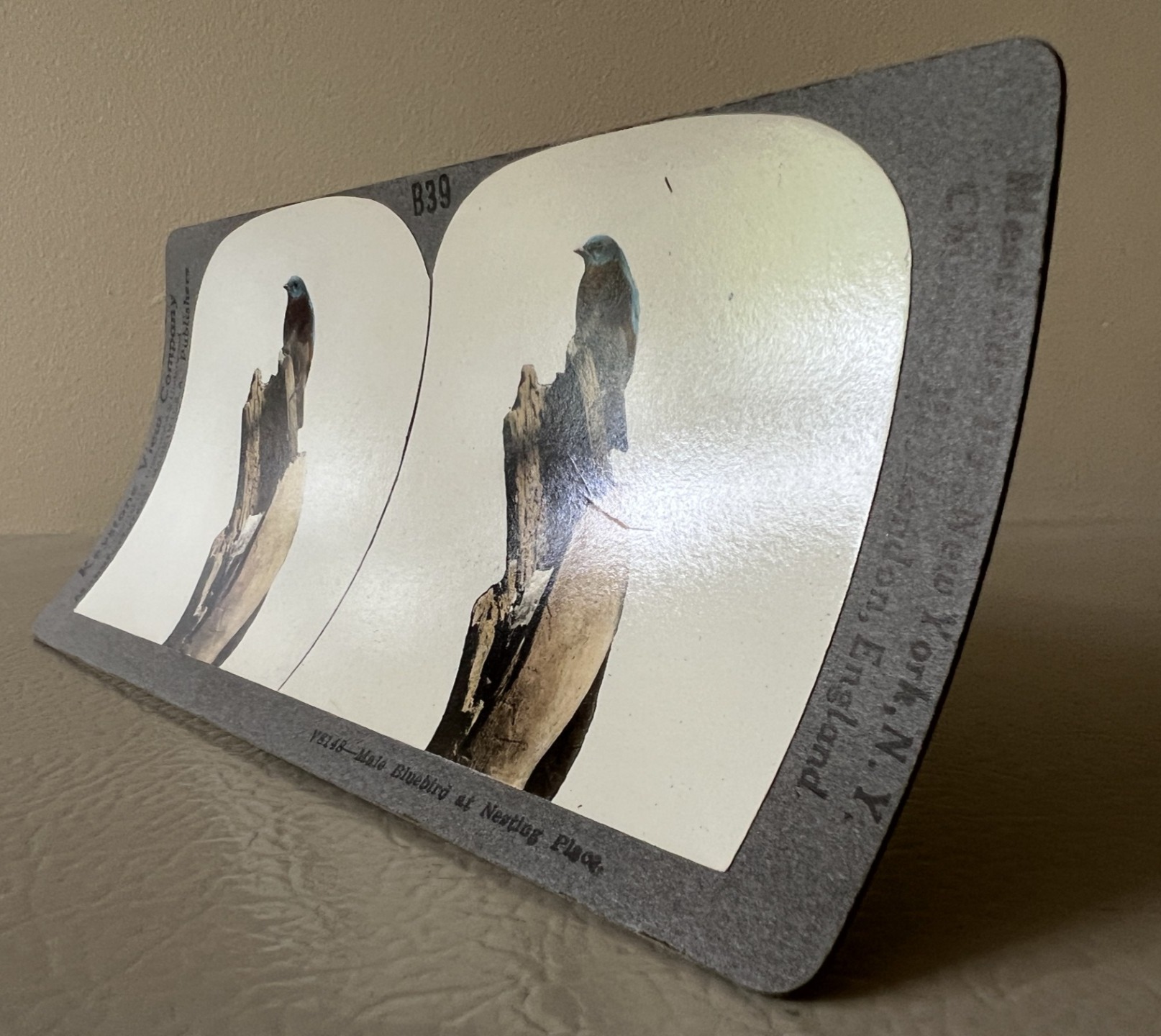 Figure GT49.4 –Keystone Stereographic Image No.V8148 "Male Bluebird at Nesting Place" |