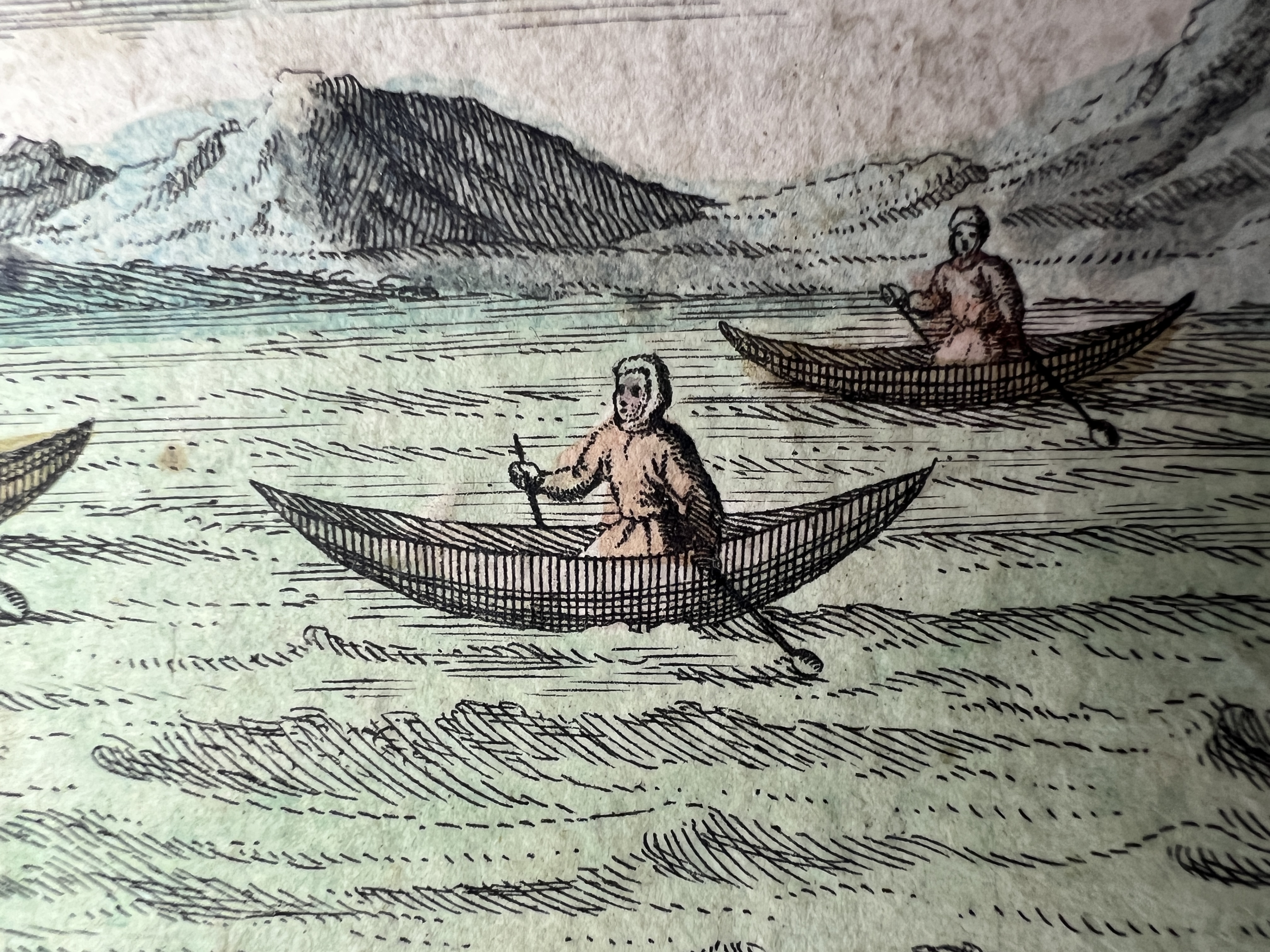 Size and Variety: The scene that came with this box was of arctic hunters (Figures GT49.5 and .6). However, Englebrecht's workshop produced a huge selection for the kulissentheater – around 200 subjects in 3 different formats. Format sizes were defined by the large folio sheets of paper used by engravers. Multiple images would be created in a single impress then cut: four parts for the quarto format (15.6 x 20.8 cm); eight for the octavio format (9.2 x 14.3 cm) and 12 for the duodecimo format (7.3 x 9.0 cm). Engelbrecht employed two artists, Jeremias Wachsmuth (1711-1771) and Johann David Nessenthaler (1717-1766), to help him produce this huge output. Fusslin et al. calculate that they were active between 1737 and 1770.[10]