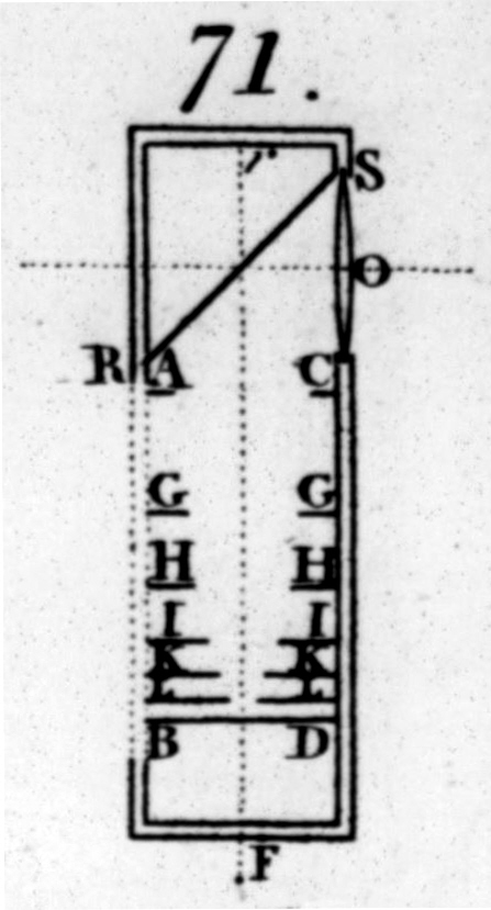 "fig. 71. in which BD represents the picture at bottom, RS a reflecting plane; O the lens through which the picture is seen erect, and directly before the eye." Source: Harris, Joseph. 1775. A Treatise on Optics London: B. White. |