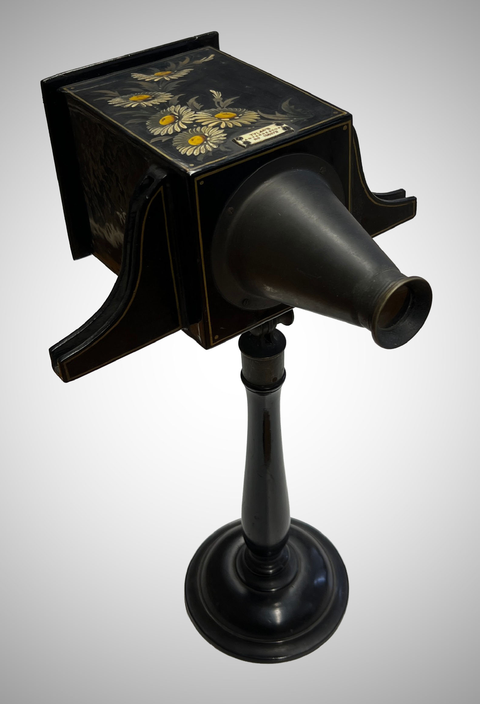 This viewer is designed to enhance the 3D effect of photo-format lantern slides. It is an example of an "optical machine" and is included in the Optical Machine Taxonomy