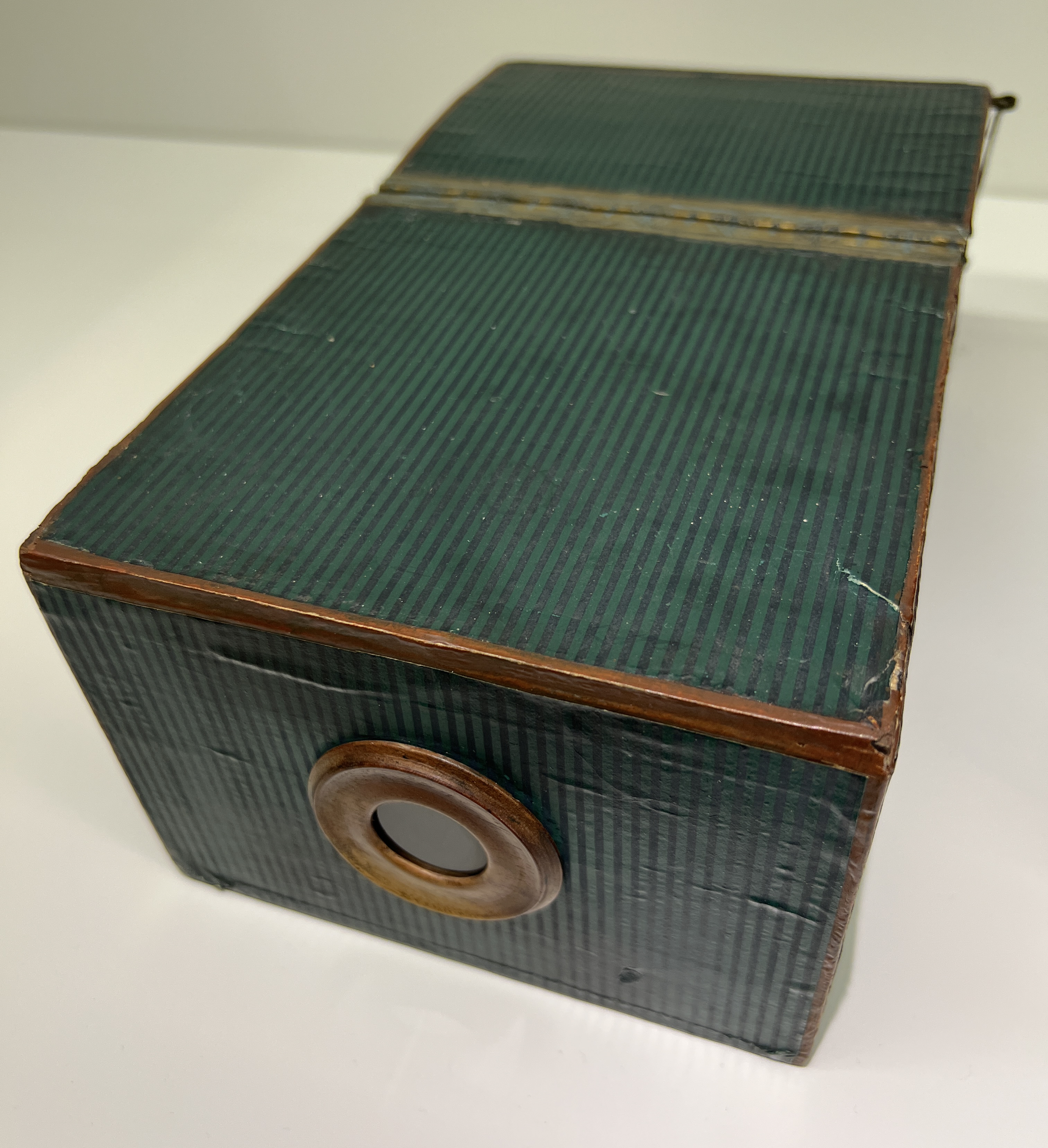 This boîte is for larger format images (20 cm wide). It is depicted alongside the Polyorama Panoptique that superseded it in 1849.