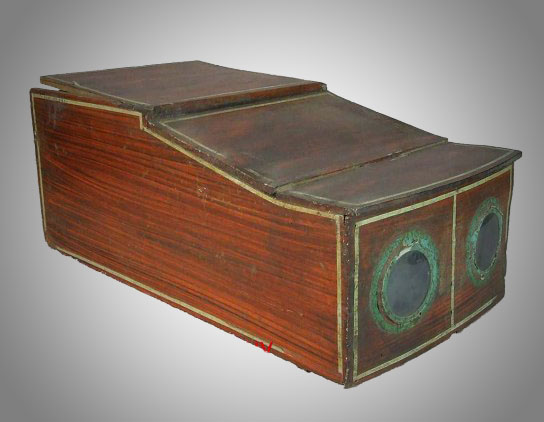 We do not know who owned the workshop or designed the distinctive boxes for it. We know that it was French and active in the 1820s. Its boxes are uniform in design and construction. They are made of lightweight, cheap materials. They are early examples of the industrial production of optical machines as cheap commodities for the middle classes. It preceded the Lefort workshop and likely was an inspiration to it and perhaps competition to it as well.