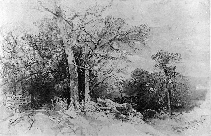 William Gilpin (1724 - 1804) was the English authority on picturesque landscape painting. A young artist like Grundy would certainly have read Observations on the River Wye (1782) and might have read Remarks on Forest Scenery (1790) where Gilpin describes the kind of “close forest scene” we see depicted here.