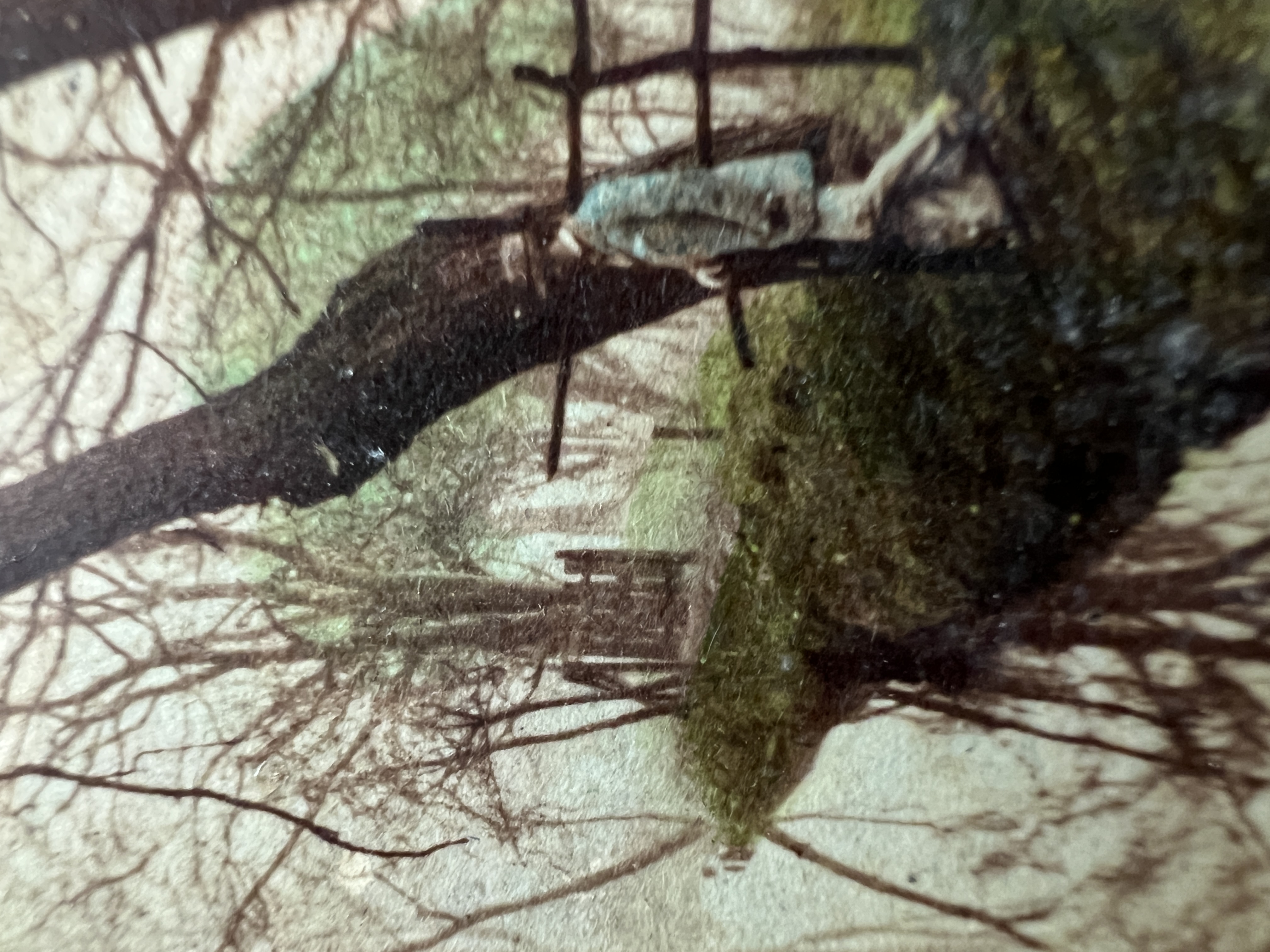 On the right is a detail. Open it in a separate tab to see it properly. You can get a sense of the painterly feel of these images when enlarged in the stereoscope. The paint surface is evident in the cracks in the albumen as though it were an old master done in oils – at times it feels like a painting, at times it breaks through to pure open space.